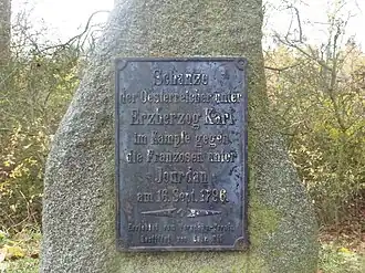 Badly injured, Marceau remained in Altenkirchen and received several visits from Austrian officers, including Paul Kray. He died two days later in the early morning on 21 September, just before the Archduke arrived to pay his respects. On 23 September, the Austrians handed Marceau's body to the French at the bridgehead in Neuwied, and he was buried in Coblenz.[7] Both sides offered gunfire salutes. Jacques Philippe Bonnaud was also killed in the rear guard action.[2]