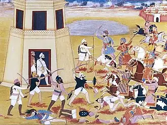 - ^ The center refers to the middle of the Mughal army in tactical formation.