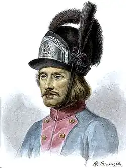 Boris Mellin's corps encamped at the village of Świerżeń Stary (10 June N.S.). On 11 June he attacked the Polish-Lithuanians hiding in Mir. The Russian jaeger battalion was the first to enter the place. The Polish-Lithuanians cleared it. F. Buxhoeveden with the Smolensk Dragoon Regiment pursued General Bielak at a distance of 9.6 km (6.0 mi) and captured 2 cannons. L. Bennigsen with the Izyum Regiment and a battalion of the Murom Infantry Regiment pursued at a distance of 7.4 km (4.6 mi) up to 10,000 men under Józef Judycki, who had fled to Słonim.[2]