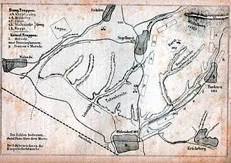 Both armies attacked, a rare event in the Thirty Years' War, which besides Oldendorf only occurred in the Second Battle of Breitenfeld. The Swedish left was commanded by future Imperial field marshal Peter Melander.[6] Subsequently, field marshal Torsten Stålhandske led a Swedish brigade.[7] The later field marshal Gottfried Huyn von Geleen participated in the battle on the imperial side.[8]