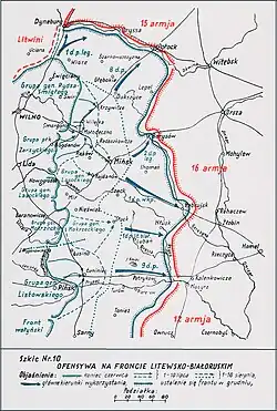 In the second half of July 1919 the institution of the Polish Armed Forces finished its work on a plan for a large-scale offensive, the aim of which was to capture Minsk, Barysaw, Babruysk and putting the Polish front on the line of the Daugava and Berezina river.[4][5]