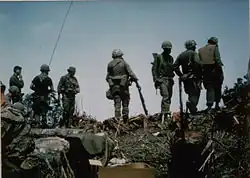 The LRRPs held Signal Hill for close to three weeks, providing a vital fire support base and radio relay site for the troops in the valley to communicate with Camp Evans and with approaching aircraft. Their action saved American lives and helped ensure the success of Operation Delaware by allowing coordinated air and ground attacks, timely artillery strikes, and air rescues of wounded infantrymen and downed aircrews.[2] From their commanding position the LRRPs could see for miles in the cool, thin air, from the distant warships in the South China Sea 30 miles (48 km) to the east to the mountains in neutral Laos 7 miles (11 km) to the west.[1]