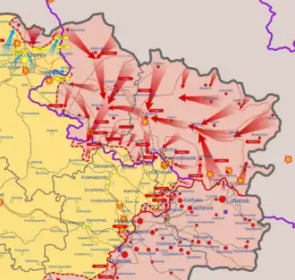 ![]() The front line on May 13, with the Donets outlined in purple. | |||||||