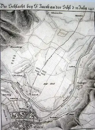 - ^ a b Battle of St. Jakob an der Sihl in German, French and Italian in the online Historical Dictionary of Switzerland.