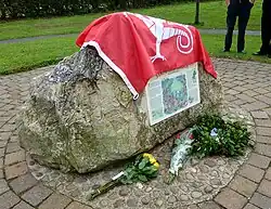 The first memorial is located in the village on Main Street (A116) to the east of Church Road.[26] The monument's inscription reads (in both English and Norwegian):