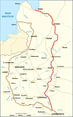 Mackensen's Eleventh Army, and Linsingen's Bug Army, continued their northerly advance towards Brest-Litovsk, occupying the citadel on 26 August. Otto von Below's Army of the Niemen during Riga–Šiauliai offensive advanced into southern Latvia, while Scholtz's Tenth Army advanced towards Vilnius, which was abandoned by the Russians on 17 September.[7]: 320–323