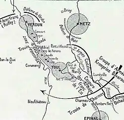 The French had suffered a crushing defeat in the Battle of Lorraine and retreated in disorder. Helmuth von Moltke the Younger, the Chief of the General Staff of the German army had a difficult choice. The apparent collapse of the French Second Army (General Noël de Castelnau) made possible a breakthrough at the Trouée de Charmes (Charmes Gap) and the encirclement of all French troops in Lorraine and the Ardennes.