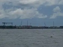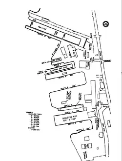 After the construction projects for new lake freighters had dried up, Bay Shipbuilding entered the salt-water shipbuilding market.[5] By 1984, employment had fallen to around 220. Bay shipbuilding received a contract with Sea-Land Service for three container ships for around $180 million later that year.[8][9] The ships were Sea-Land's only vessels designed and built in the United States. However, Bay Shipbuilding did not win the contracts by underbidding foreign shipyards. Since the ships were destined for the Puget Sound to Alaska trade route, the Jones Act required that the ships be made in the United States.[10] In March 1988, after the completion of the three Sea-Land container ships, Bay Shipbuilding announced it was ceasing new shipbuilding due to the lack of domestic contracts and a decline in the US shipbuilding industry.[11] In the mid-1990s, the nearby Peterson Builders shipyard closed.