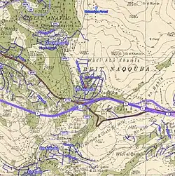 Bayt Naqquba (Arabic: بيت نقّوبة, Hebrew: בית נקובא, also spelled Bait Naqquba) was a Palestinian village in British Mandate Palestine, located 9.5 kilometers west of Jerusalem, near Abu Ghosh. Before Palmach and Haganah troops occupied the village during Operation Nachshon on April 11, 1948, approximately 300 Palestinian Arabs lived there.[5] After the 1948 Arab–Israeli War, a moshav named Beit Nekofa was founded close to the site by Jewish immigrants from Yugoslavia. In 1962, residents of Bayt Naqubba built a new village named Ein Naqquba, south of Beit Nekofa.[5]