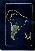 A map of South America appears on the back of Argentine passports, showing the country's location within the continent and within Mercosur, together with the Argentine Antarctic Claim and the Falkland Islands as part of Argentina. Most of the Chilean Magallanes Region disappeared, included the Strait of Magellan, the Chilean part of Tierra del Fuego and all islands south of the Beagle Channel.