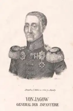 Friedrich Wilhelm Christian Ludwig von Jagow (8 September 1771, in Wolfshagen โ 2 December 1857, in Berlin) was a Prussian General of Infantry who fought in the Napoleonic Wars.[1]
