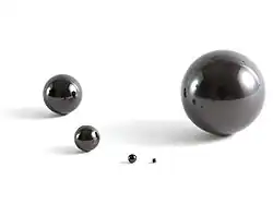 Bearing balls are special highly spherical and smooth balls, most commonly used in ball bearings, but also used as components in things like freewheel mechanisms. The balls themselves are commonly referred to as ball bearings.[1] This is an example of a synecdoche. The balls come in many different grades. These grades are defined by bodies such as the American Bearing Manufacturers Association (ABMA), a body which sets standards for the precision of bearing balls. They are manufactured in machines designed specially for the job.