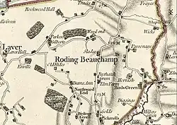 Beauchamp Roding (/ˈbiːtʃəm/ BEETCH-əm) is a village and former civil parish, now in the parish of Abbess, Beauchamp and Berners Roding, and in the Epping Forest District of Essex, England. The village is included in the eight hamlets and villages called The Rodings. Beauchamp Roding is 8 miles (13 km) west from the county town of Chelmsford. In 1931 the parish had a population of 173.[1]