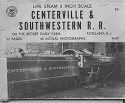 The Becker Farm Railroad (also known as the Centerville and Southwestern Railroad) was located on the Becker dairy farm in Roseland, New Jersey, US. This 2-inch scale, 9+7⁄16 in (240 mm) gauge miniature railway, which featured a live steam locomotive, small-scale diesel locomotives, and small-scale passenger cars, was the brainchild of Eugene Becker. The railroad dated back to 1938, with the first revenue trips taking place ten years later.