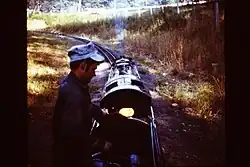 On the return trip to Centerville, trains usually stopped and sat "in the hole" at Pigpen Siding to allow the next train to pass. On rare occasions, when only one engine was running, the train would pass through the siding without stopping. When returning to Centerville, the train would pass through the station and into Centerville yard, where the engine would be run around the train (if it were a diesel) or be backed into the turntable for turning (if it were #1501) and then would be coupled back to the other end of the train. (Number 1502 was the only engine that didn't require turning since it had engineer controls on both ends. Number 1500, although a diesel, had only one set of controls and would also need to be turned on the turntable.) The train would then reverse direction back to the station where passengers would wait for the conductor to unlatch their car door so that they could leave the train.
