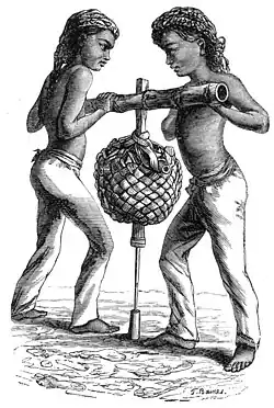 Bedil is a Maritime Southeast Asian term that refers to various types of firearms and gunpowder weapons, ranging from small pistols to large siege guns. The term bedil comes from Tamil wedil (or wediyal) and wediluppu (or wediyuppu).[1] In their original form, these words refer to gunpowder blast and saltpeter, respectively. After being absorbed into bedil in the Malay language and in a number of other cultures in the archipelago, Tamil vocabulary is used to refer to all types of weapons that use gunpowder. The terms bedil and bedhil are known in Javanese and Balinese. In Sundanese the term is bedil, in Batak it is known as bodil, in Makassarese baddilik, in Buginese, balili, in Dayak language, badil, in Tagalog, baril, in Bisayan, bádil, in Bikol languages, badil, and in Malay it is badel or bedil.[1][2][3]