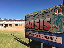 The Simpson Desert Roadhouse provides petrol and automotive services, accommodation, general supplies, accommodation, restaurant and bar.[19]