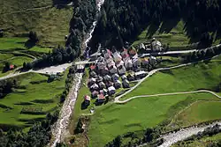 In 1906, pre-Roman graves and a Roman era villa and coins were discovered in Bedretto. The presumption, that it was originally part of Airolo, could not be confirmed by any available records. Bedretto is first mentioned in 1210 as Bedoledo and at that time it was a separate municipality.[3] Already in 1227, when the alpine pastures of Leventina valley were divided among the communities, Bedretto had dependent, surrounding farms and hamlets. Bedretto was the only community that was not given any alpine pastures.[3]