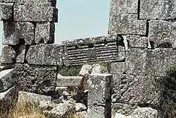The church northeast of the 5th-century church dates to the early 6th century.[1] Little survives from this church, but scholars have observed sweeping lateral arches.[1] Other remains include olive presses, which survive at the edge of the village ruins. There are also some unidentified buildings, which have decorated lintels, as well as architectural fragments, such as capitals.
