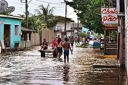 In 1987, the land became an independent municipality, and Beiradão was renamed Laranjal do Jari.[3] The city is still mainly a river slum, and suffers from fires, floods, and open sewage.[7]