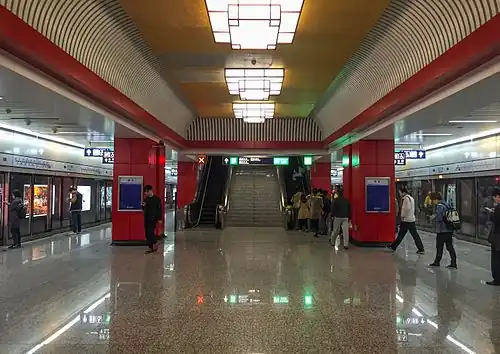 Beishatan station[1] (simplified Chinese: 北沙滩站; traditional Chinese: 北沙灘站; pinyin: Běishātān zhàn) is a station on Line 15 of the Beijing Subway. It was opened on December 28, 2014 as a part of the stretch between Wangjingxi and Qinghua Donglu Xikou and is located between Olympic Park and Liudaokou stations.[2]