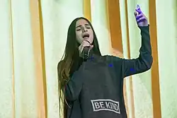 Helena Meraai (Russian: Хелена Мерааи; born 2 May 2003) is a Belarusian singer. She represented Belarus in the Junior Eurovision Song Contest 2017 with the song "I am the One".[9] She took part in the Russian version of The Voice Kids, where she was defeated in the battle round. Shortly after, she represented Russia in the 2016 edition of the children's festival New Wave Junior as part of a trio, where she won along with two other girls. Her mother is Belarusian, while her father is from Syria.[10]