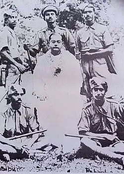 Subhas Chandra Bose organised a group of volunteers during the 1928 Kolkata session of Indian National Congress.[1][2][3][4] The group was named Bengal Volunteers Corps and was under the leadership of Major Satya Gupta. Subhas Chandra Bose himself was the General officer commanding.[5] After the Calcutta session of the Congress was over, the Bengal Volunteers continued its activities, under the guidance of Gupta,[6] and was turned into an active revolutionary association.[7]