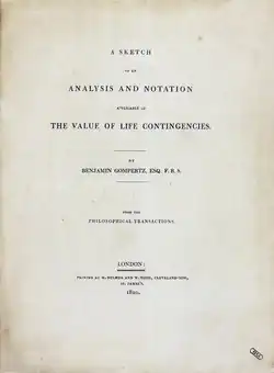 - ^ Gompertz, Benjamin (1825). "On the Nature of the Function Expressive of the Law of Human Mortality, and on a New Mode of Determining the Value of Life Contingencies". Philosophical Transactions of the Royal Society of London. 115: 513–585. doi:10.1098/rstl.1825.0026. S2CID 145157003.