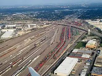 Bensenville Yard is a Canadian Pacific Kansas City freight and switching yard located in Bensenville and Franklin Park, Illinois. It is located 15 miles (25 km) northwest of Chicago, below O'Hare International Airport. Its origins date back to the first freight yard of the Chicago, Milwaukee, St. Paul and Pacific Railroad (Milwaukee Road) in 1916, which by the early 1950s had grown into a large marshaling yard with 70 directional tracks. The Milwaukee Road was taken over by Canadian Pacific in the late 1980s, which rebuilt and modernized the facilities. Today, Bensenville Yard is CPKC's largest freight and marshaling yard (21 tracks on the western part and 34 on the eastern part; 55 tracks total) in the USA.