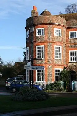 The road between Henley-on-Thames and Dorchester on Thames became a turnpike in 1736[20] and in the 18th and early 19th centuries Benson was an important staging post for coaches between London and Oxford via Henley.[21] Its broad open square was surrounded by coaching inns.[21] At its peak the village had four large inns, ten smaller alehouses and a blacksmith. The 1844 opening of the Oxford branch of the GWR rapidly reduced coach traffic: within ten years only three Oxford-London coaches a week were still running through.[22] The Henley–Dorchester road ceased to be a turnpike in 1873.[20]