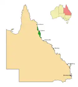 The scrub breadfruit naturally occurs from the area of Cedar Bay (now part of Ngalba Bulal National Park), southward along the coast as far as Hinchinbrook Island, and inland to the Atherton Tablelands. It favours rainforest habitats and is found from sea level to around 800 m (2,600 ft).[5][6][7]