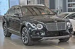 The Bentley Bentayga is a luxury SUV produced by British marque Bentley Motors. Introduced in late 2015, it is the brand's first luxury crossover SUV.[6][7] Its body is manufactured at the Volkswagen Zwickau-Mosel Plant in Germany, then painted and assembled at Bentley's factory in Crewe, United Kingdom.[6][7]