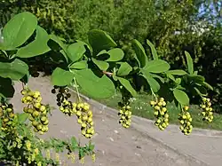 Berberis berries are edible but sour and are mostly used in jams and jellies.[2][5] However, eating high quantities of B. koreana berries can result in adverse side effects (see Intoxication section).[2]