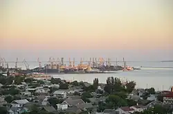 Berdiansk or Berdyansk (Ukrainian: Бердянськ, IPA: [berˈdʲɑnʲsʲk] ⓘ; Russian: Бердянск, IPA: [bʲɪrˈdʲansk]) is a port city in Zaporizhzhia Oblast, south-eastern Ukraine. It is on the northern coast of the Sea of Azov, which is connected to the Black Sea. It serves as the administrative center of Berdiansk Raion. The city is named after the Berda River's Berdiansk Spit, at the foot of which it is located.[2] Its population is 106,311 (2022 estimate).[3]