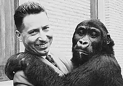 ![]() Heuvelmans (left) with a gorilla in 1993 | |