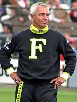 In 2000, van Marwijk became the manager of Rotterdam-based club Feyenoord. In his first season, he led Feyenoord to a second-place finish in the Eredivisie and in his second season, 2001–02, he had one of the biggest successes of his career. After beating SC Freiburg, Rangers, PSV and Internazionale in the knock-out stage, he won the UEFA Cup final after beating Borussia Dortmund in the final, 3–2.[4][5] In October 2002 he extended his contract until the summer of 2004, with the option of one more year.[6] Feyenoord ended in third place in the league with van Marwijk in the 2001–02, 2002–03 and 2003–04 seasons.
