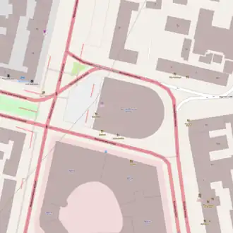 Until the late 1840s, the square was located on the outskirts of town, where immigrants from Bessarabia in the southern regions of Ukraine would come to sell their products.[2] Nowadays, the Bessarabska Square is one of three squares of the Khreshchatyk street complex, the others being the Maidan Nezalezhnosti and the European Square, located in the street's center and northeastern end, respectively.