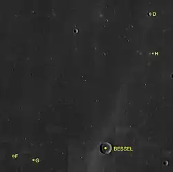By convention these features are identified on lunar maps by placing the letter on the side of the crater midpoint that is closest to Bessel.
