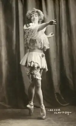 Bessie Clayton (c. 1878 – July 16, 1948) was an American Broadway and Vaudeville dancer and choreographer. She was an influential bridge between classical ballet and stage dancing.[1] [2]The New York Times called Clayton America’s first native-born prima ballerina.[3]