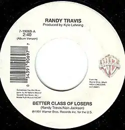 "Better Class of Losers" is a song co-written and recorded by American country music singer Randy Travis. It was released in December 1991 as the third single from his album High Lonesome. It peaked at number 2 in both the United States and Canada. Travis co-wrote this song with Alan Jackson. Travis' performance earned him the Grammy nomination for Best Male Country Vocal Performance, his fifth nomination in that category.