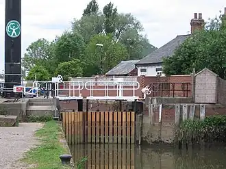 The Beck has been improved by a major dredging programme,[16] which lasted for five months and was completed in April 2004. Sampling of the sediments before work began revealed high levels of heavy metals and hydrocarbons, as a result of historic industrial processes, and they therefore had to be taken to a hazardous landfill site when they were removed from the Beck. Land and Water, the contractors responsible for the project, developed a special screening plant that enabled the hazardous waste to be separated from non-hazardous sediments, and this was the first time that such a system had been used on an inland waterways contract.[17] In mid-2005, a multimillion-pound scheme to redevelop the Beck and its immediate vicinity began. The final stage, which started in February 2007 and cost £250,000, involved restoration of the lock gates and pumping station, together with the construction of footpaths and cycle routes.[18] The previous set of gates were fitted in 1953.[19]