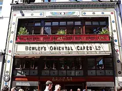 The company has operated a café on Dublin's Grafton Street since 1927.[3] Sometimes described as a "Dublin landmark"[8] the building shows influence from the Art Deco movement, with its façade decorated with an Egyptian Revival mosaic, a style rare in Dublin. It was designed by the Dublin architectural firm, Millar & Symes.[11] In the interior, there are stained glass windows by Harry Clarke showing orders of architecture. The windows are on the ground floor towards the back of the building.[12] A stained glass window by artist Jim Fitzpatrick from the Mary Street branch was stored after its closure and then transferred to the remaining Grafton Street branch.[13] A third stained glass artist's work is included in the Grafton Street store, a window by Pauline Bewick entitled Cafe Society.[12] The building was modified extensively in 1995.[11]