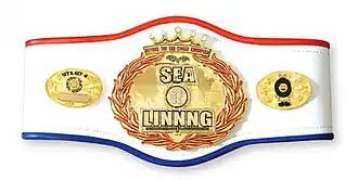 The Beyond the Sea Single Championship (BEYOND THE SEA SINGLE 王座 or BEYOND THE SEAシングル王座[4], Biyondo za shī shinguru ōza) is a women's professional wrestling championship owned by the Seadlinnng promotion. The title, which is situated at the top of Seadlinnng's championship hierarchy, was introduced on October 3, 2018, and the inaugural champion was crowned on November 1, 2018, when Nanae Takahashi defeated Arisa Nakajima in the finals of an eight-woman tournament.[1] The bottom part of the belt is blue as it resembles the ocean, while the upper part of the belt is red, which resembles the sun.[5] The title was vacated once as a result of former champion Yoshiko taking time off to rehabilitate nagging injuries.[6]