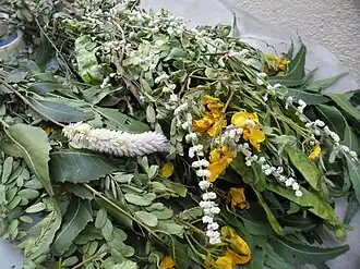 Kaappu kattu is a traditional practice observed in the Kongu region, wherein leaves of Azadirachta indica (Neem), Senna auriculata (Avaram), and Aerva lanata (Poolappu) tied along the roofs and walls of houses and residential areas. The term "Kaappu Kattu" originates from the Tamil word "kappu," meaning "to secure" or "to protect."