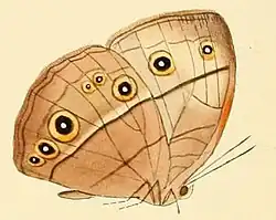 - ^ "Afrotropical Butterflies: File E – Nymphalidae - Subtribe Mycalesina". Archived from the original on 2014-02-22. Retrieved 2012-05-15.