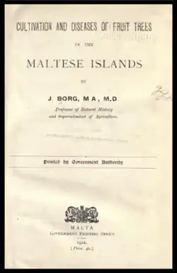 - ^ a b c Borg, J. (1922). Cultivation and Diseases of Fruit Trees in the Maltese Islands. Malta: Government Printing Office.