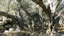 The antiquity of Malta's ancient Bidni olive trees has been confirmed through carbon dating. Although the exact dates have been contested, with some noting that the trees were established during the mid-late Medieval period,[18] others have argued that some of these olive trees date back to the 1st century A.D.[19][20][21] The Bidni olive trees which are located just below an area known as Ġebel Għawżara have been protected since 1933,[22] and are also listed in UNESCO's Database of National Cultural Heritage Laws.[23] In 2011, after recognising their historical and landscape value, and in recognition of the fact that "only 20 trees remain from 40 at the beginning of the 20th century",[24] local authorities declared this site as a Tree Protected Area,[25] under the provisions of a regulation made in 2018.[26] In 2021, two local entities were entrusted with the maintenance and protection of one of the olive groves located in Bidnija.[27][28] These highly protected Bidni olive trees, with some measuring between five and eight metres in height, still bear fruit, and are often revered by visitors.[29]