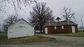 The Big 4 Fair Art Hall, also known as Hollenbeck Hall, is a historic building located in the Wapello County Fairgrounds in Eldon, Iowa, United States. The single-story brick structure was built in 1911, replacing an older building that had been destroyed in a fire. It is thought to be the oldest original brick building on a fairgrounds in the state.[2] The building has four wings that were devoted to the four Iowa counties in the Big 4 Fair Association, Wapello, Davis (South), Jefferson (east), and Van Buren (southeast). People from each county would display their produce, grain, and arts and crafts in their county's wing. During other times of the year, the building was used for meetings and entertainment.
