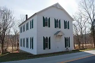 The current structure was built in 1888 and added to the National Register of Historic Places in 1989.[1] It is a gable-front nave-plan frame church. It has regularly spaced pointed-arch windows, and is four bays along its sites and three bays on its front and back.[2]
