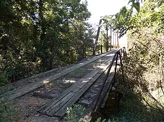 The Big Bottom Slough Bridge is a historic bridge in rural eastern Independence County, Arkansas. Now closed to traffic, it formerly carried Padgett Island Road across Big Bottom Slough about 2.5 miles (4.0 km) south of Magness. It is a pin-connected Pratt through truss structure, with a span of 110 feet (34 m) and a total structure length of 192 feet (59 m). The bridge was built in 1909, and is the only bridge of its type in the area.[2]
